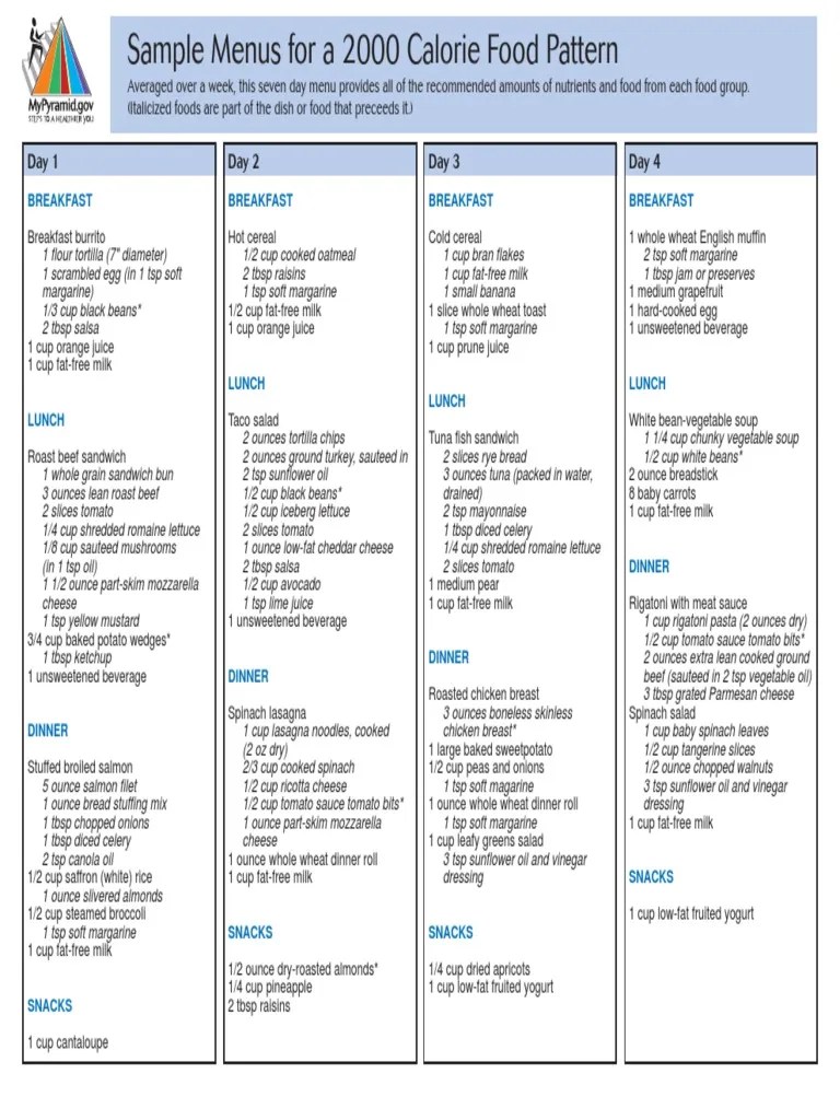 Web these delicious meal plans were created by dietitians who won the calorie control council’s healthy menu contest. Web 2,000 calorie meal plan. Web in general, women should eat 2 to 3 cups of vegetables daily, and men should eat 3 to 4 cups daily. 6oz fat free yogurt (15g) 2 slices whole wheat bread (30g).