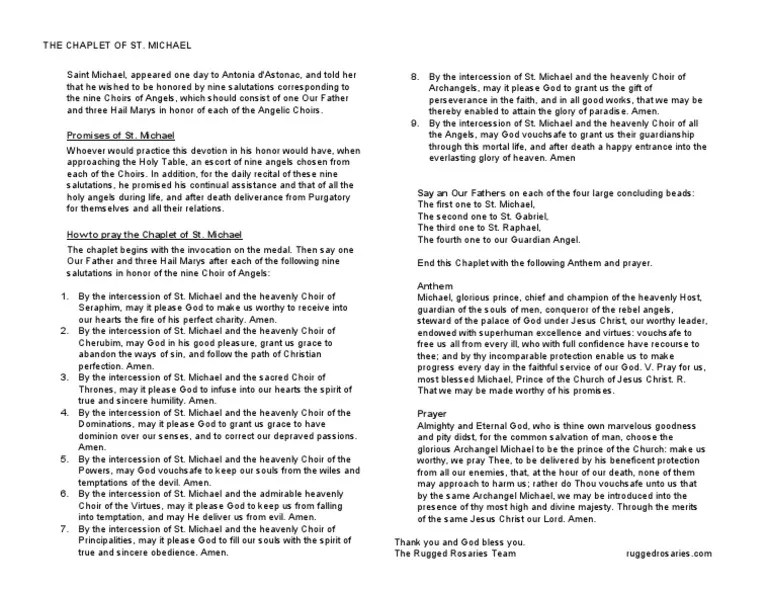 Glory be to the father, and to the son, and the holy spirit, as it. Web the chaplet of st. What do we mean by choirs? Web michael this chaplet is from a revelation of st. Web before beginning the chaplet, you should make an act of contrition.