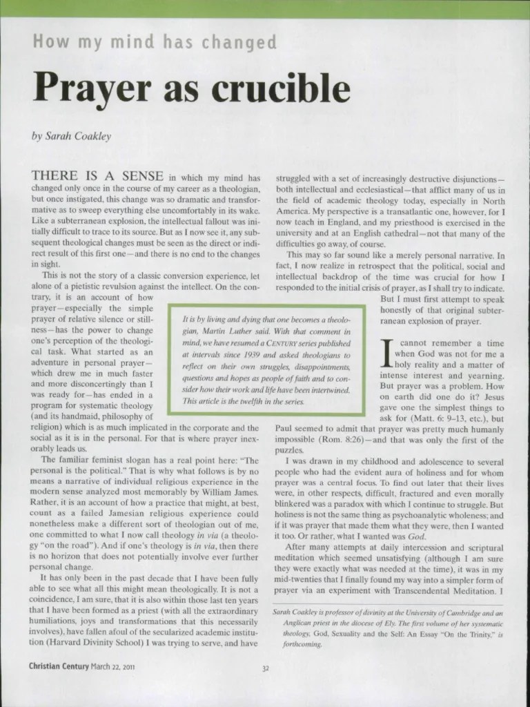 Web Prayer As Crucible By Sarah Coakley In The Mar 22, 2011 Issue Todd Davidson It Is By Living And Dying That One Becomes A Theologian, Martin Luther Said.