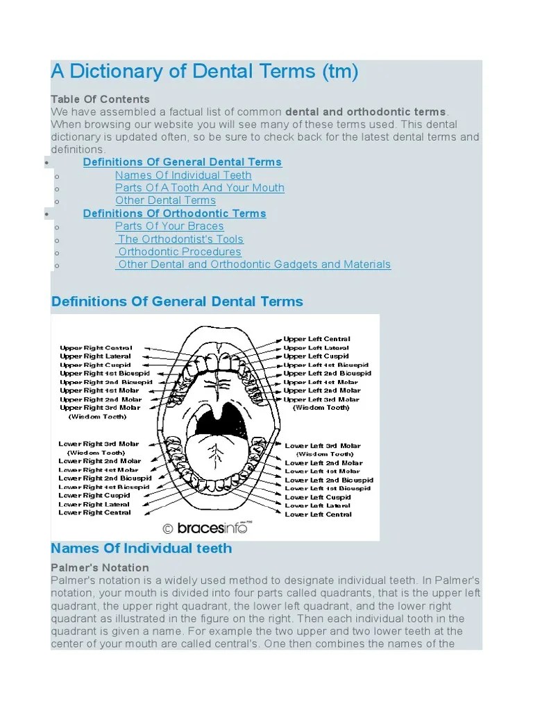 Dental Termspage001 Dental hygiene student, Dental hygiene school