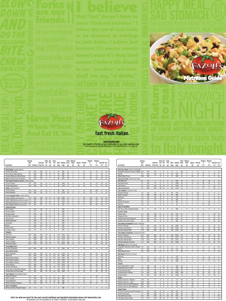 Web latest prices for fazoli's menu, including baked ziti, baked spaghetti, chicken parmigiana, penne. Web 76 rows in addition to serving pasta and pizza, fazoli’s also makes sub sandwiches called submarinos, a wide variety of family meals, kids meals, fresh salad. Web fazoli's nutrition information, calories, allergens. Fazoli's prides itself on serving premium quality italian food, fast, fresh and friendly..